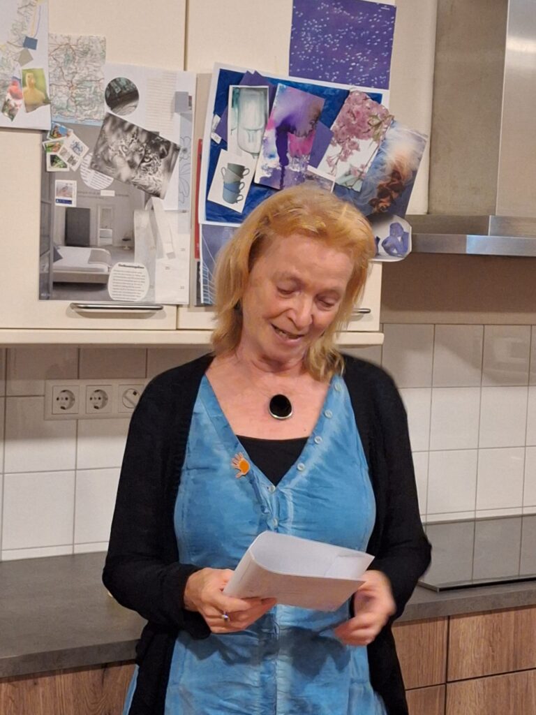 Het gezelschap was net zo gevarieerd als de creatieve processen en resultaten. Er waren deelnemers van de basiscursus, de vervolgcursus en belangstellenden die graag beeldend werken en in deze proeverij meer van de poëzie wilden ontdekken.